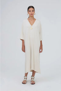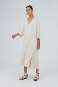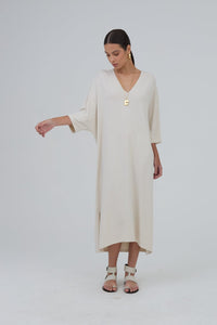 Viviane Furrier - Vestido Midi Manga Curta em Malha Ninive Off White